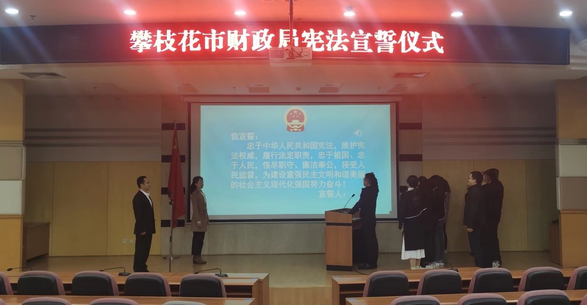 12月4日,在第十个国家宪法日到来之际,市财政局举行新任(入)职干部宪法宣誓仪式,局党组成员、驻局纪检监察组组长李雪梅担任监誓人,局党组成员、副局长李正洪主持仪式。15时10分,宣誓仪式在雄壮的国歌声中拉开序幕,宣誓人员整齐列队,右手握拳,面向国旗国徽,庄严宣誓。