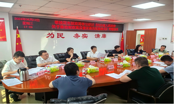 6月12日下午,市财政局召开专题会学习研讨《四川省人民政府关于推动财政高质量发展的实施意见》(以下简称《意见》),市财政局党组书记、局长彭骏主持会议并讲话,局领导班子成员及相关科室(部门)负责人参加。