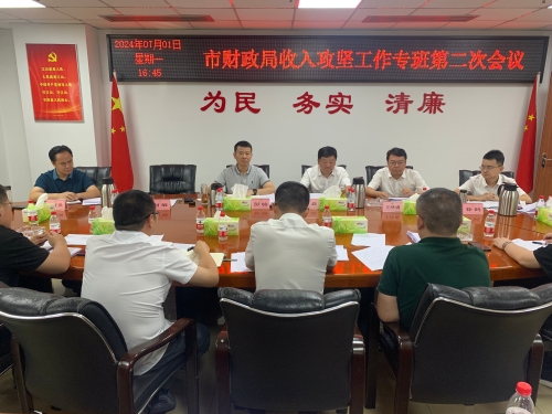 7月1日,市财政局召开财政收入攻坚工作专班第二次会议。局党组书记、局长彭骏主持会议并讲话,有关局领导、科室负责人参加会议。