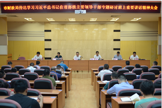 7月29日,市财政局召开传达学习习近平总书记在省部级主要领导干部专题研讨班上重要讲话精神和省委、市委工作会议精神大会。会议由市财政局党组成员、副局长杨清国主持,在家班子成员、全局干部职工110余人参加会议,局党组书记、局长周国顺出席并讲话。