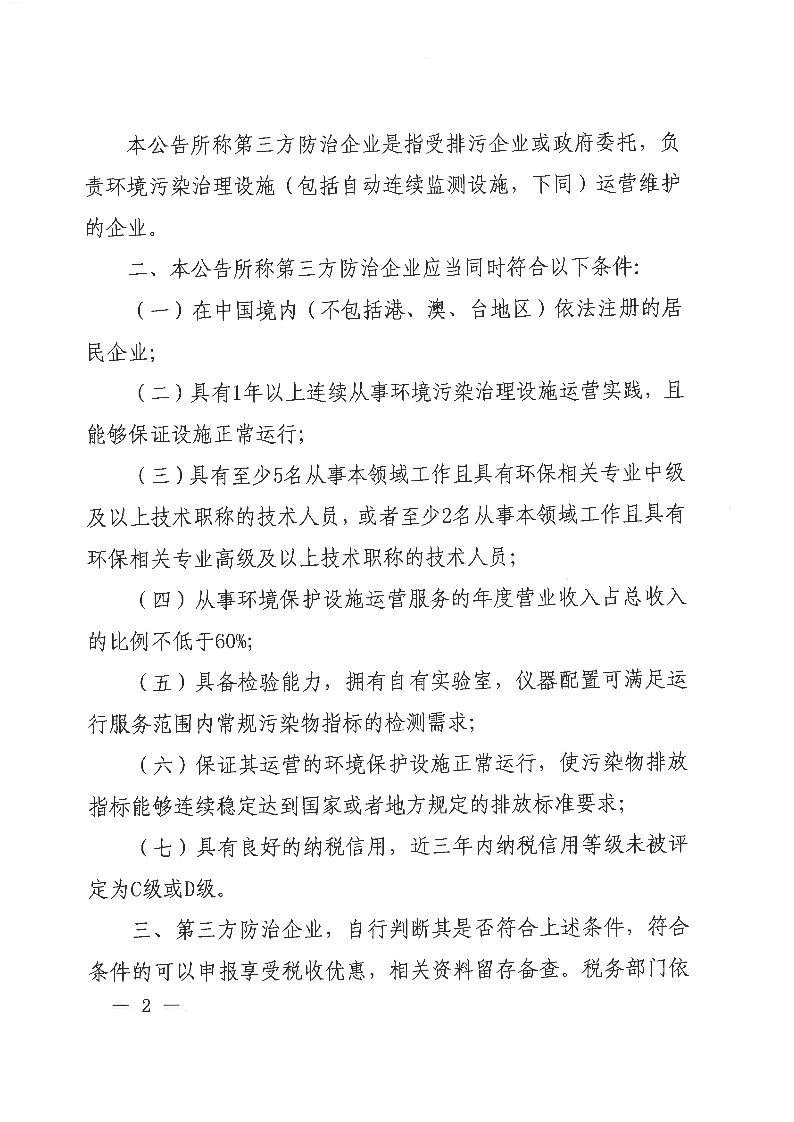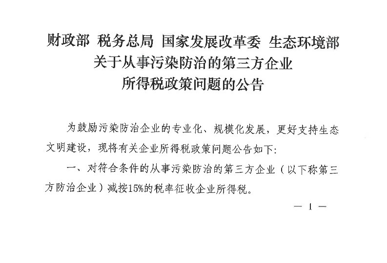 关于从事污染防治的第三方企业所得税政策问题的公告