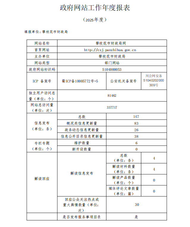 攀枝花市财政局2025年政府网站工作年度报表