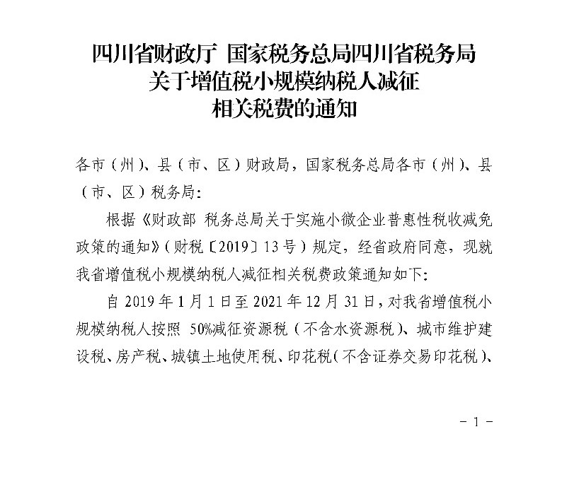 四川省财政厅、国家税务总局四川省税务局关于增值税小规模纳税人减征相关税费的通知